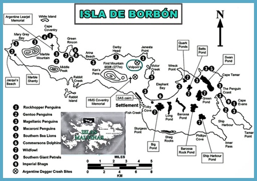 Se acumulaban los derribos, las bajas, los pilotos eyectados. A menos de cincuenta kilómetros en línea recta, la guarnición argentina de la isla de Borbón, casi en la boca norte del estrecho de San Carlos, era testigo privilegiado del paso rasante de los cazabombarderos rumbo al combate, del regreso orgulloso, de las ausencias lamentadas.