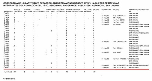 El 1 de mayo había transcurrido, el “Lince” tuvo el honor que muchos hubiesen querido, participar del bautismo de fuego de la FAA,  jornada durante la cual los Dagger completaron 13 salidas y fueron derribados dos.