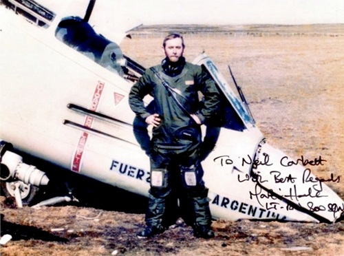 El personal de la base de la Armada Argentina rescató sus restos y los guardaron, hasta que el 29 de mayo, un avión Twin Otter de la Fuerza Aérea Argentina, en arriesgada acción y bajo la (Orden Fragmentaria 2532), fue a buscarlos y los llevó al continente en una urna, junto al mayor Puga y al capitán Díaz, pilotos de otras misiones que lograron eyectarse cuando fueron derribados. Vaya en este relato mi humilde reconocimiento al accionar de nuestros hombres del aire, valorados internacionalmente por su valentía y coraje recibiendo el recuerdo y homenajes que se merecen. Testimonio Cristian P. Benito Piloto de avión