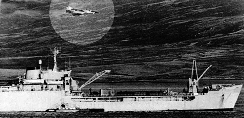 Los «Puñal», que volaban rasante y estaban armados en configuración antibuque con bombas de 500 kilos, eyectaron todas sus cargas externas y trataron de escapar, tomando curso de regreso.