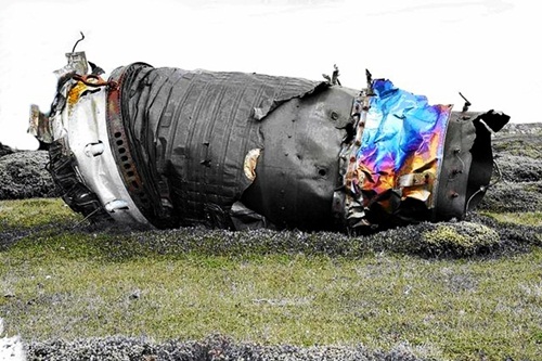 El reloj marcaba las 15:40, y se escuchaban dos explosiones. El avión se desintegró a bajo nivel, impidiendo al piloto eyectarse, cayendo los restos sobre tierra, en el lado occidental de la Bahía Elefante, en la Isla Borbón, a casi dos millas del establecimiento de nuestra Estación Aeronaval Calderón.